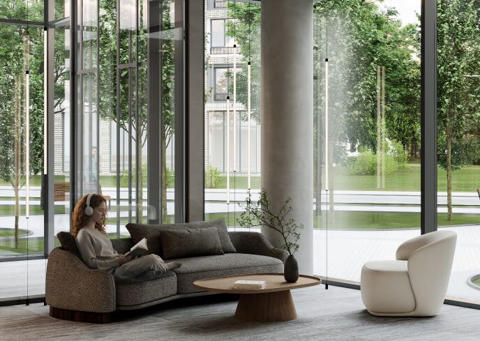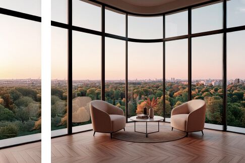 Панорамные эркеры наполняют квартиру солнечным светом и делают пейзаж за окном частью вашего интерьера. У вас появится место для отдыха или работы с видом, который будет вдохновлять вас каждый день.